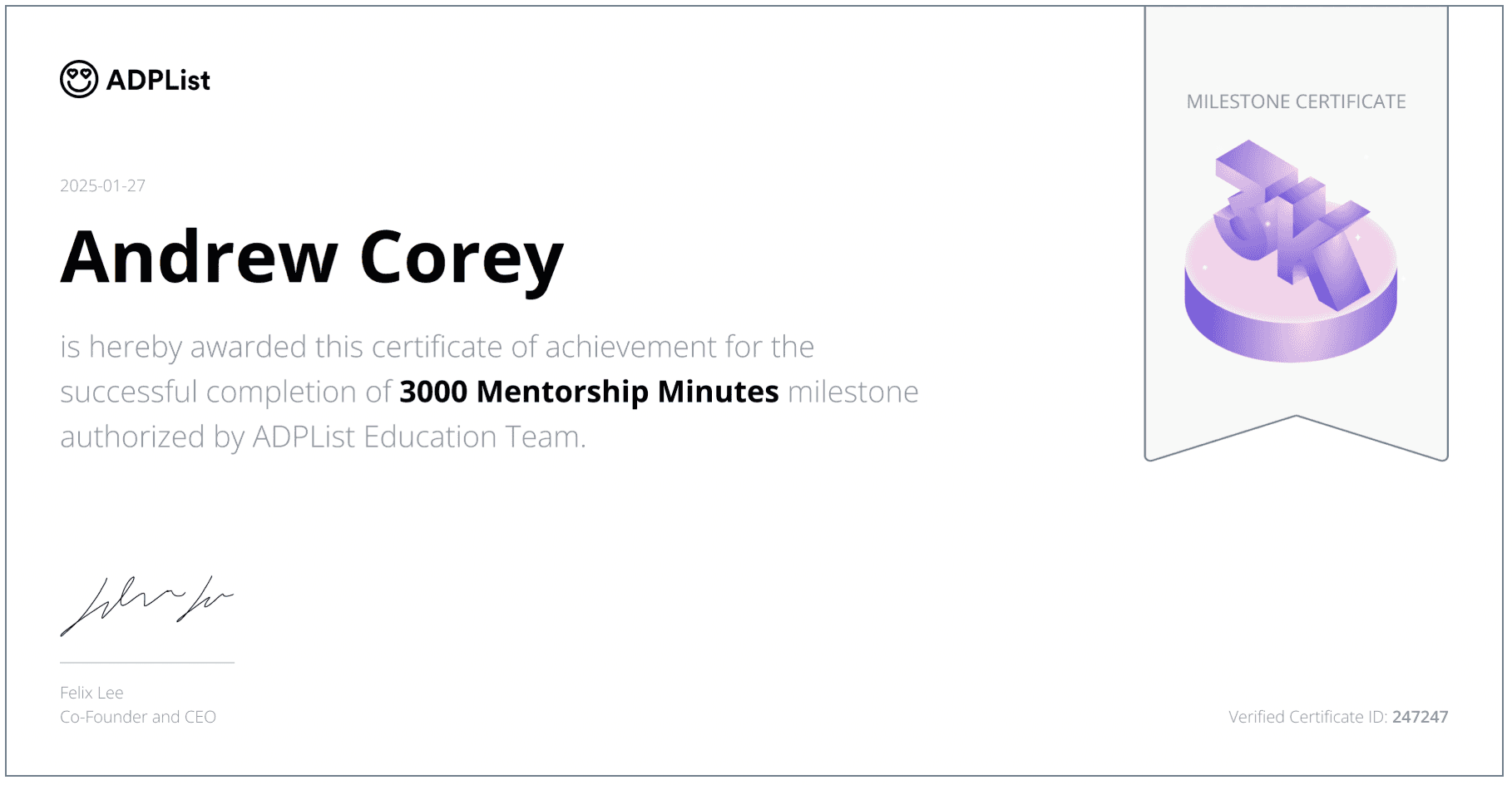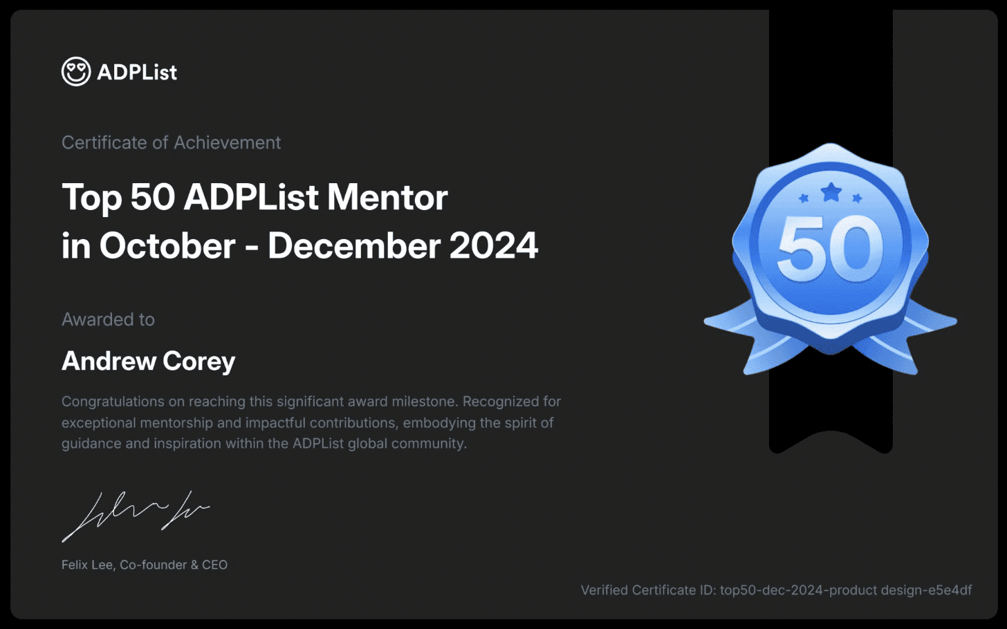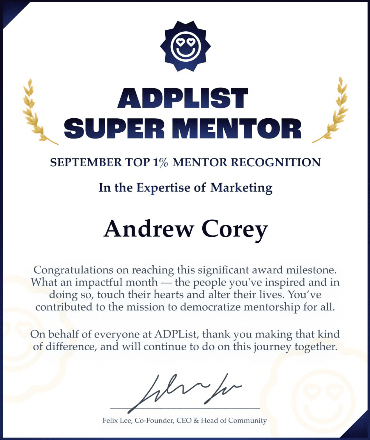 Over the course of Andrew’s tenure, he showcased his positive attitude and strong work ethic as well as being adaptable to a fast-paced and dynamic environment. He is collaborative, can navigate through ambiguity and is able to juggle multiple projects and changing priorities.