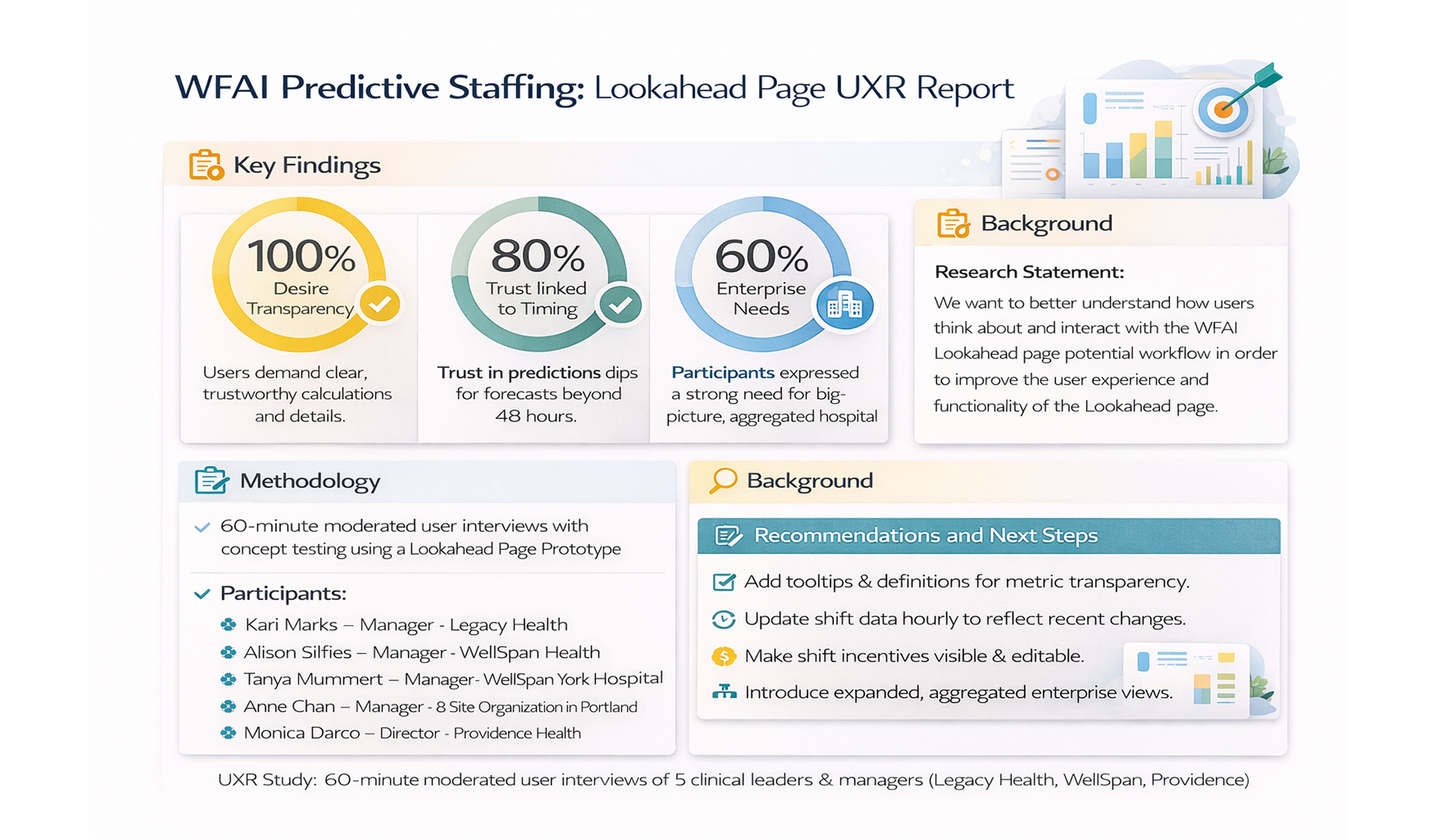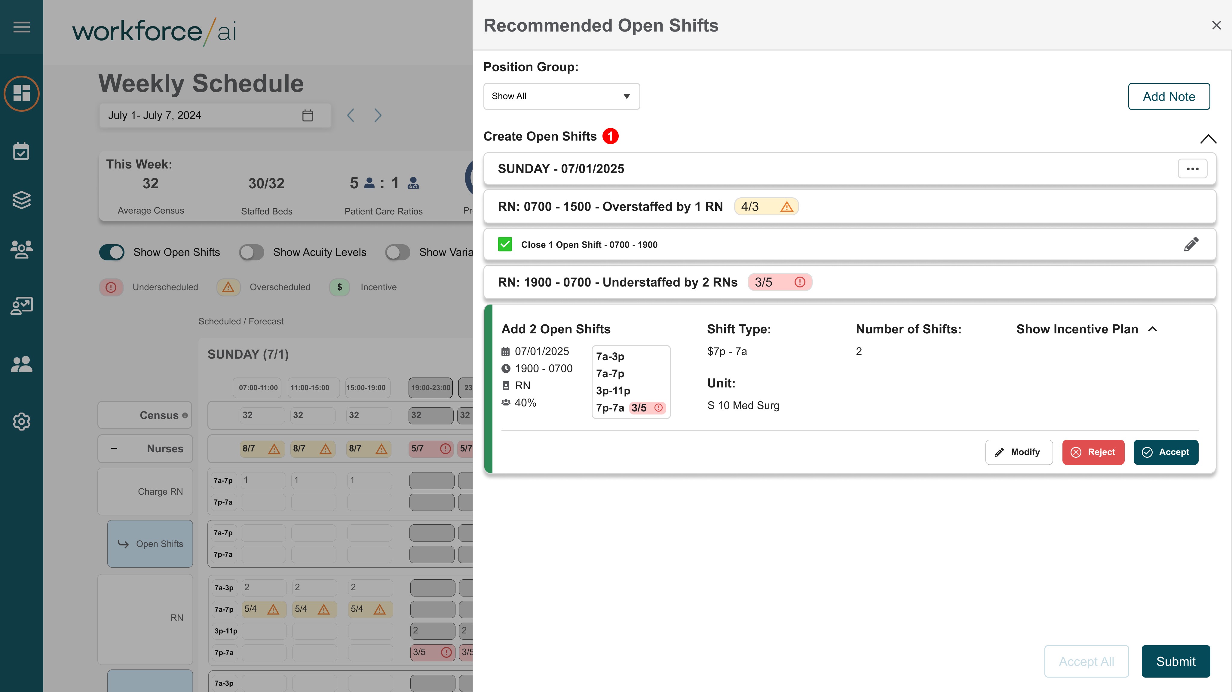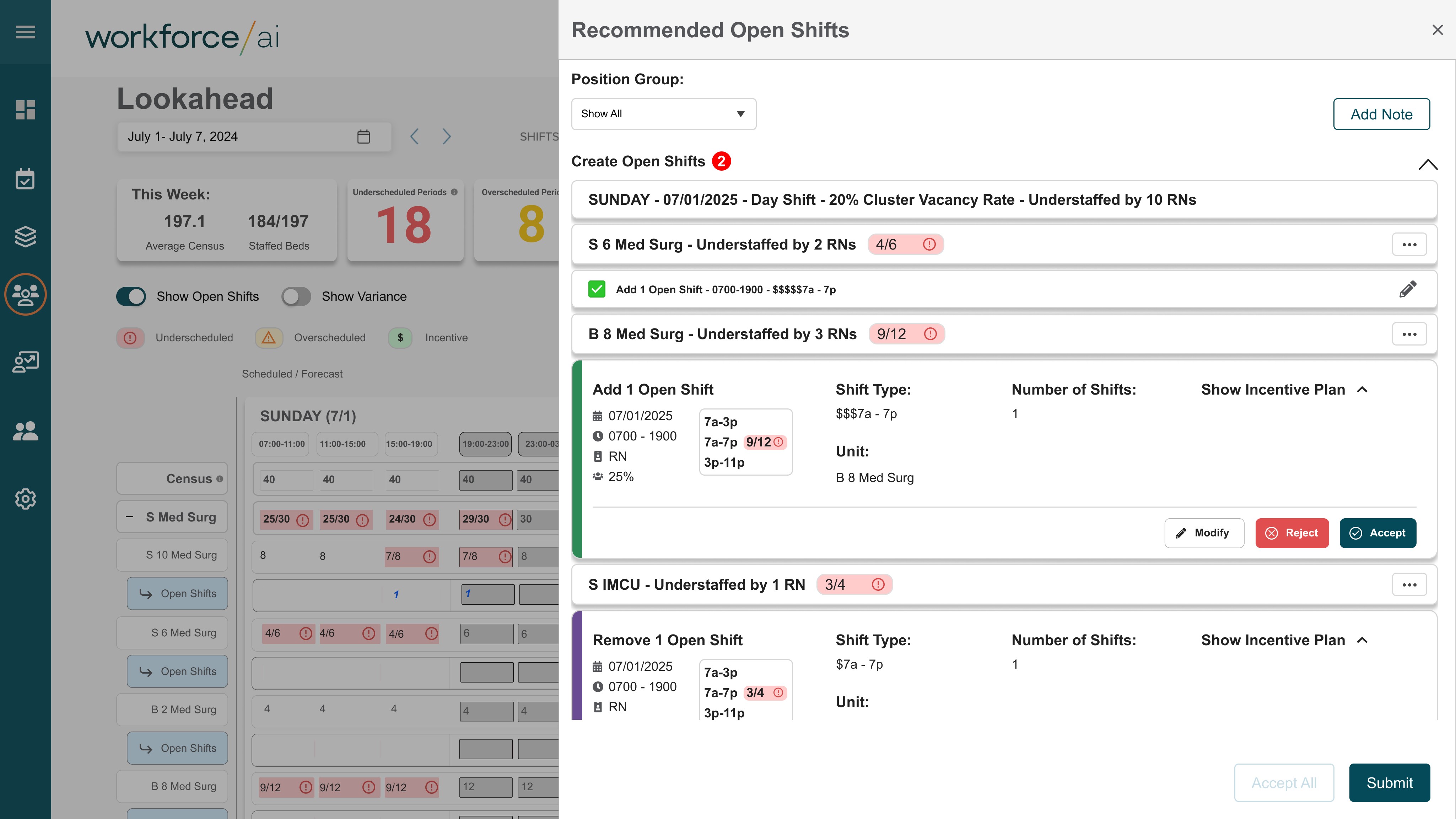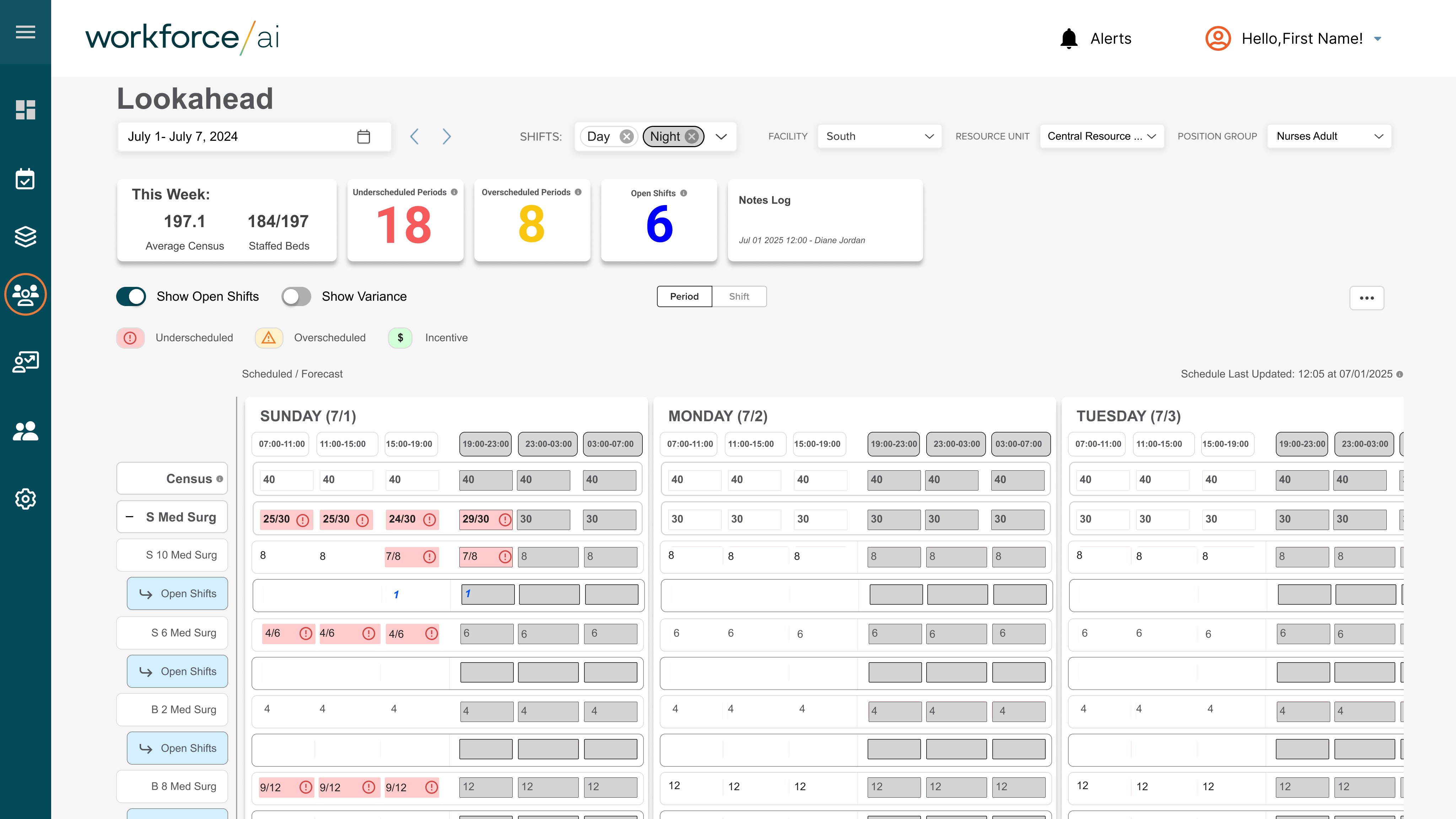 Design a predictive staffing experience that surfaces risk early, enables proactive action, and integrates naturally into existing staffing workflows — without creating alert fatigue or mistrust in AI recommendations.